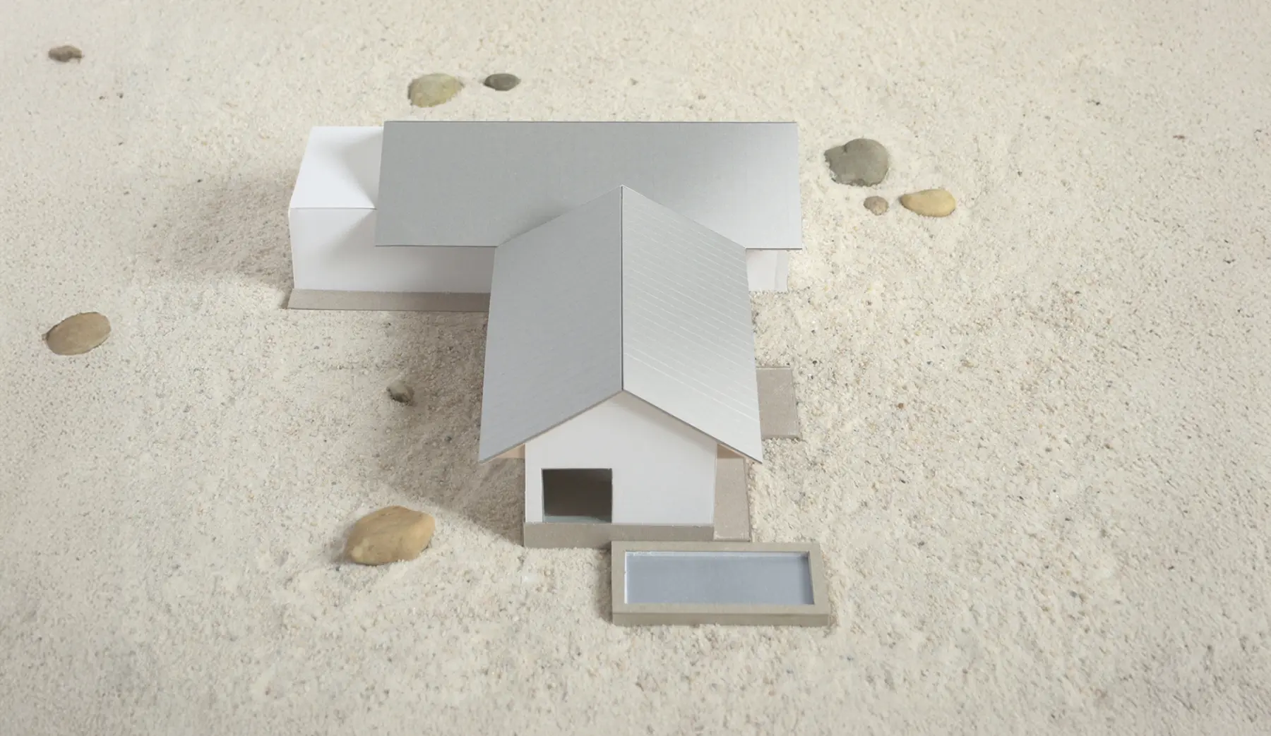 The facades, constructed with masonry and covered with white stucco, rest on a sandblasted concrete base. The zinc roof, with its generous overhangs, provides shade for the outdoor spaces and improves summer comfort. The framework is made of natural wood from local species.