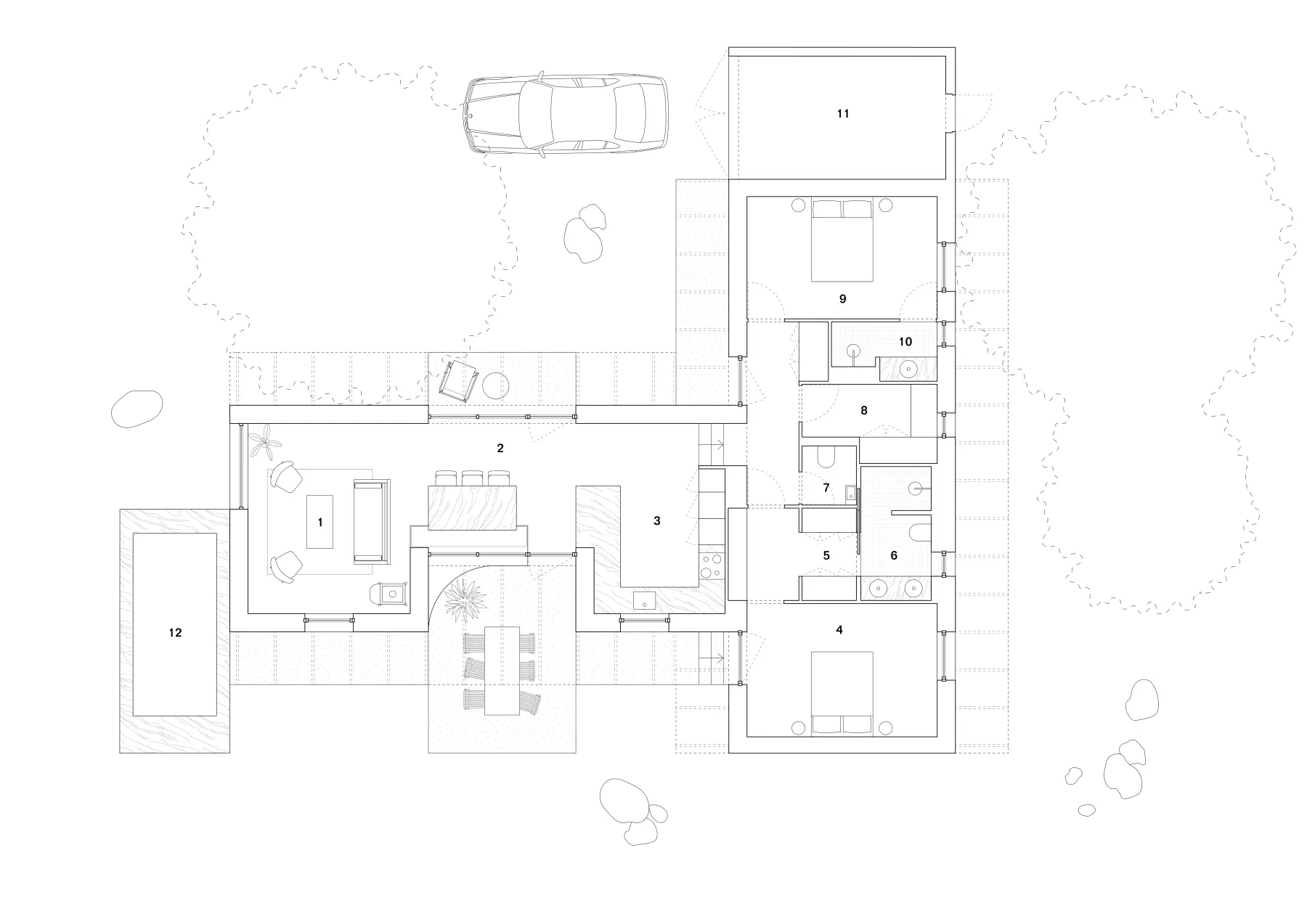 1 Living|2 Dining|3 Kitchen|4 Master room|5 Walk-in closet|6 Bathroom|7 WC|8 Laundry room|9 Bedroom|10 Bathroom|11 Storage|12 Pool