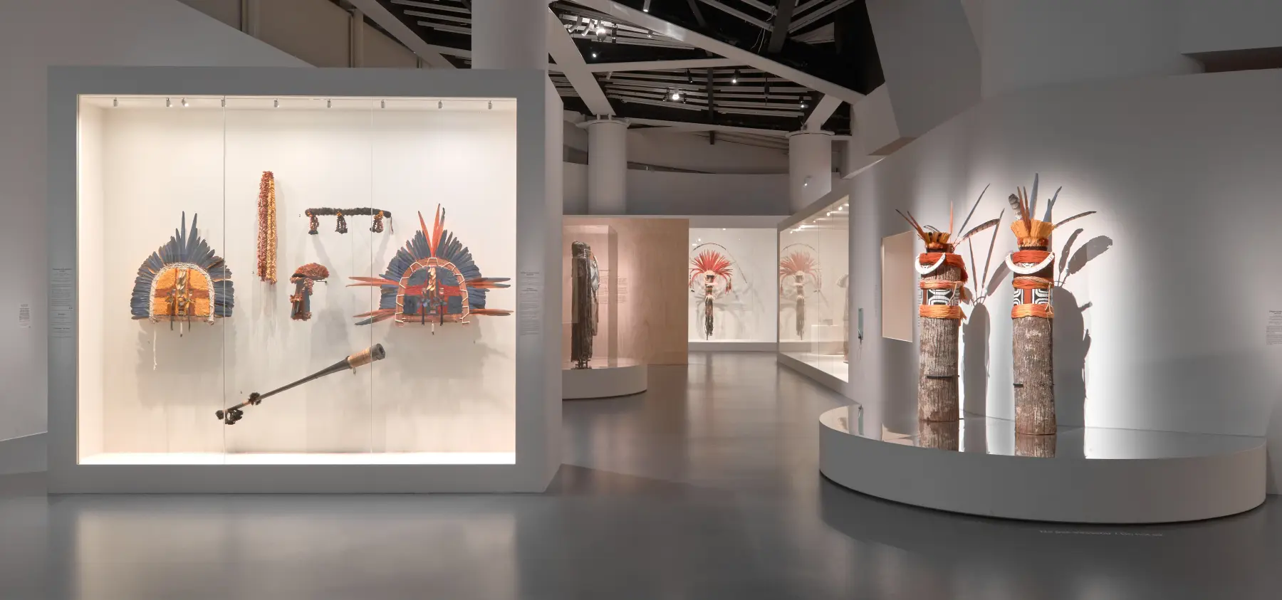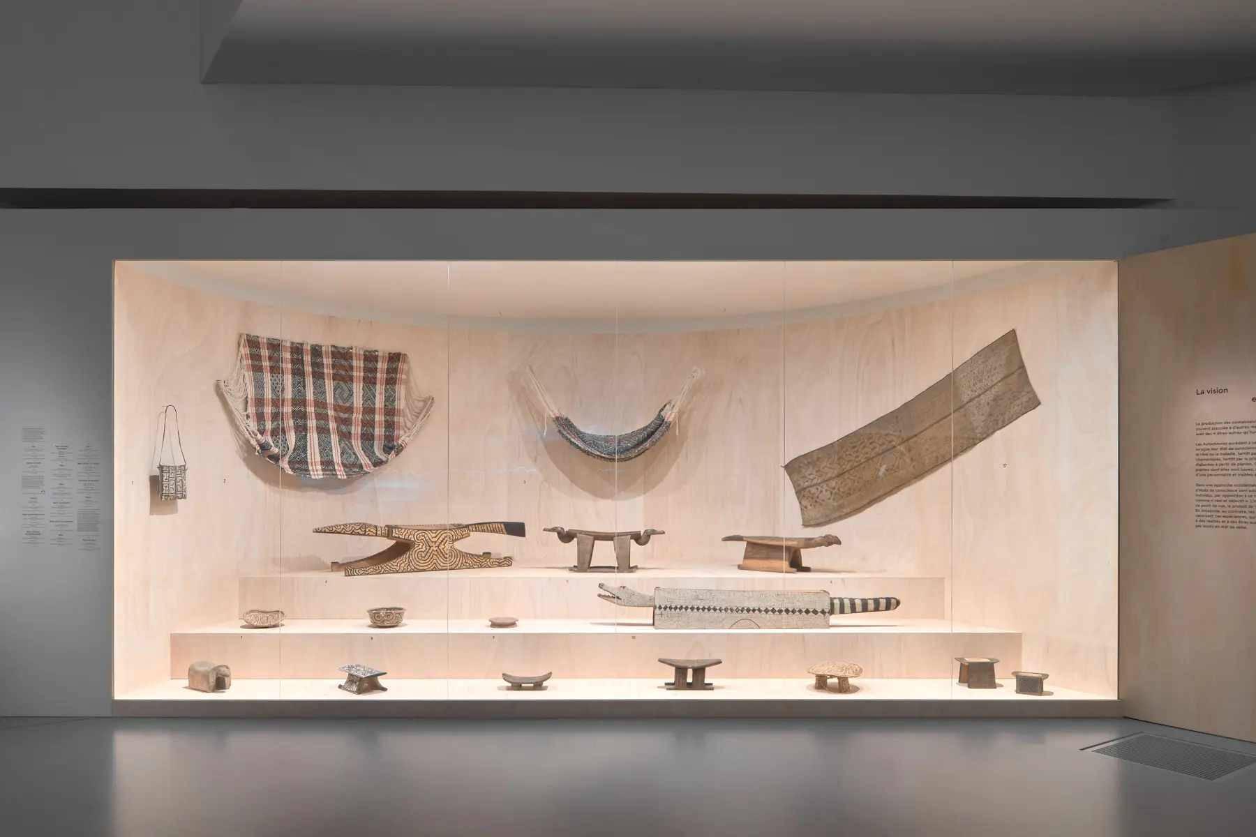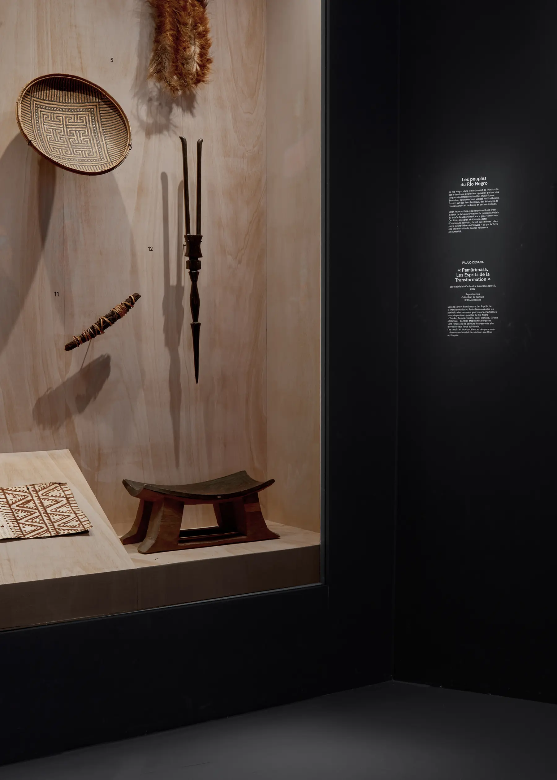 La scénographie adopte une approche intimiste et immersive, évitant l’exotisation au profit d’un point de vue autochtone. Le parcours linéaire, rythmé par des ambiances distinctes, évolue d’une immersion sensible vers une mise en scène généreuse de la pluralité amazonienne.