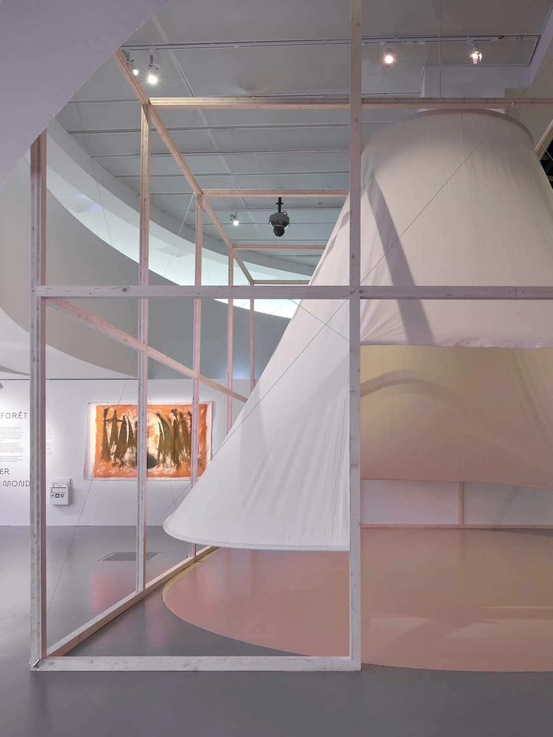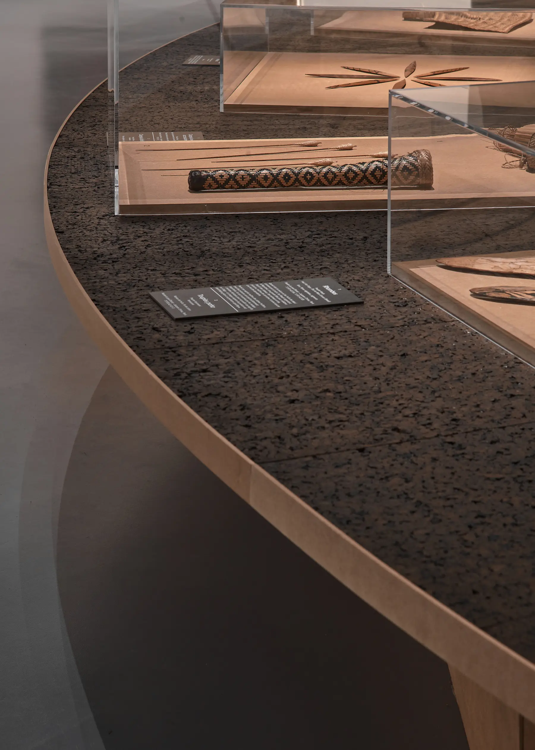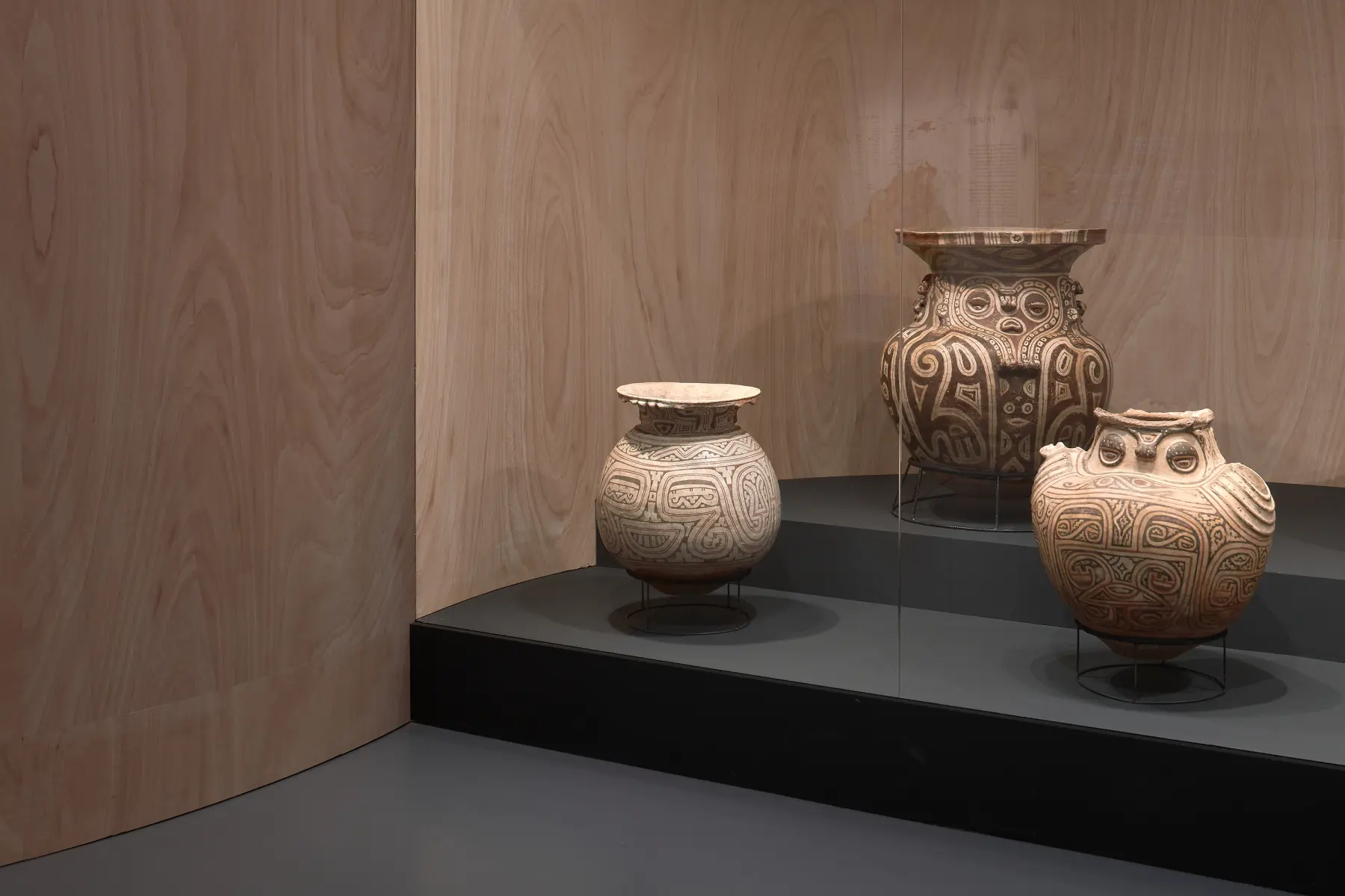 La scénographie adopte une approche intimiste et immersive, évitant l’exotisation au profit d’un point de vue autochtone. Le parcours linéaire, rythmé par des ambiances distinctes, évolue d’une immersion sensible vers une mise en scène généreuse de la pluralité amazonienne.