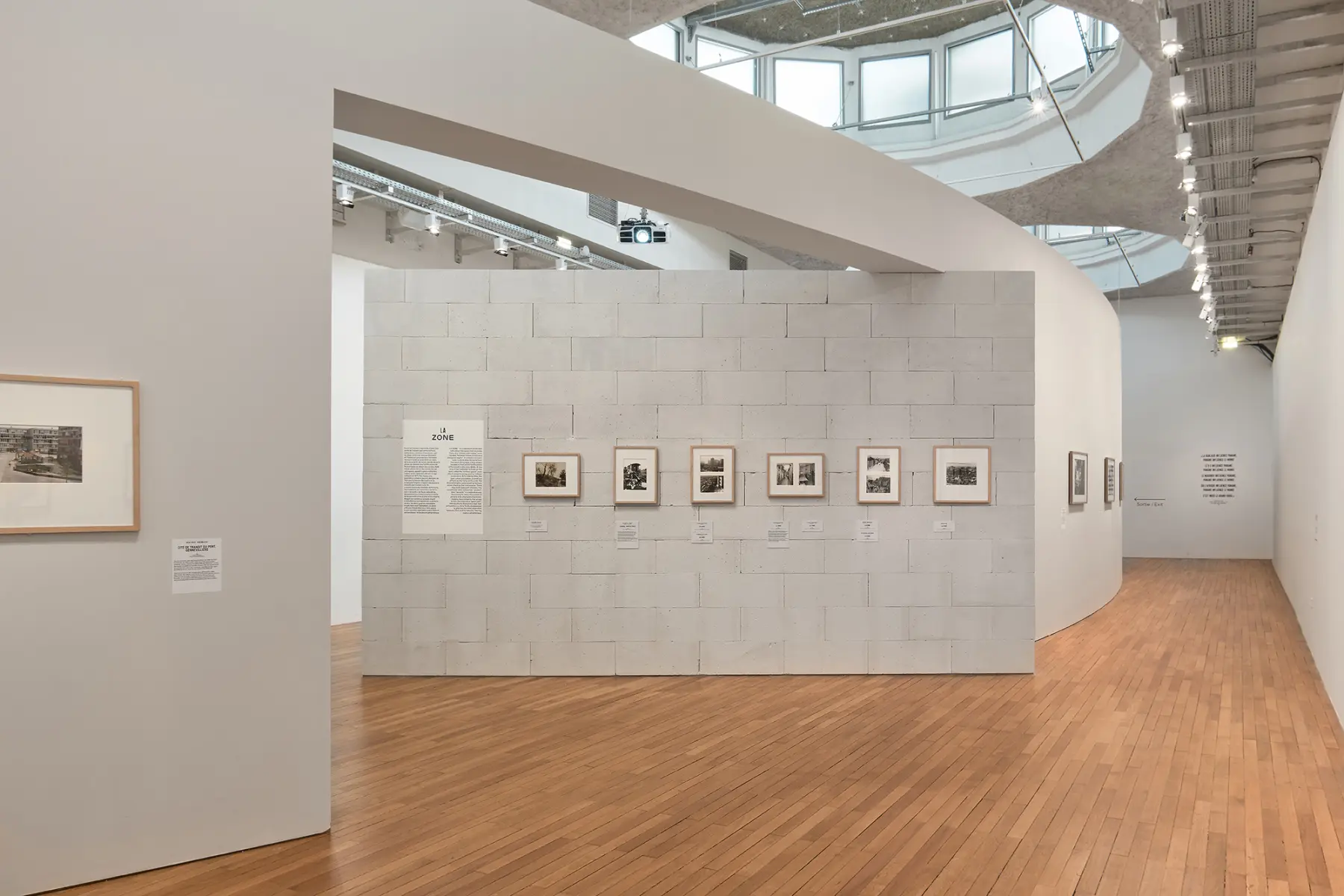 Le parcours s’organise en trois volets successifs, déployés dans les espaces d’exposition temporaire du Palais de la Porte Dorée. Une cimaise courbe et continue traverse l’ensemble de la galerie tel un fil conducteur spatial et narratif. Sa forme convexe incarne symboliquement l’imaginaire des banlieues dans sa diversité : campagne, frontière, mur, Zone, périphérie, grands ensembles, etc.